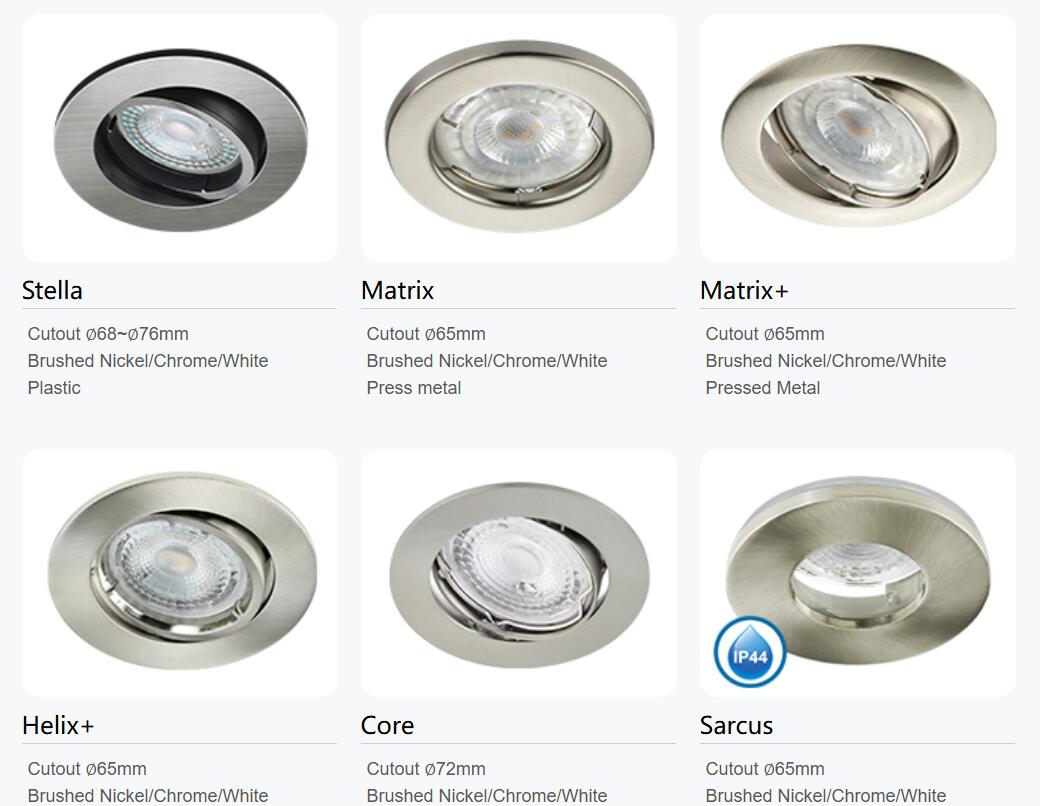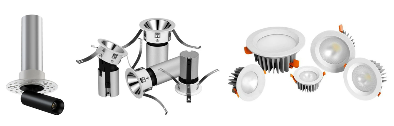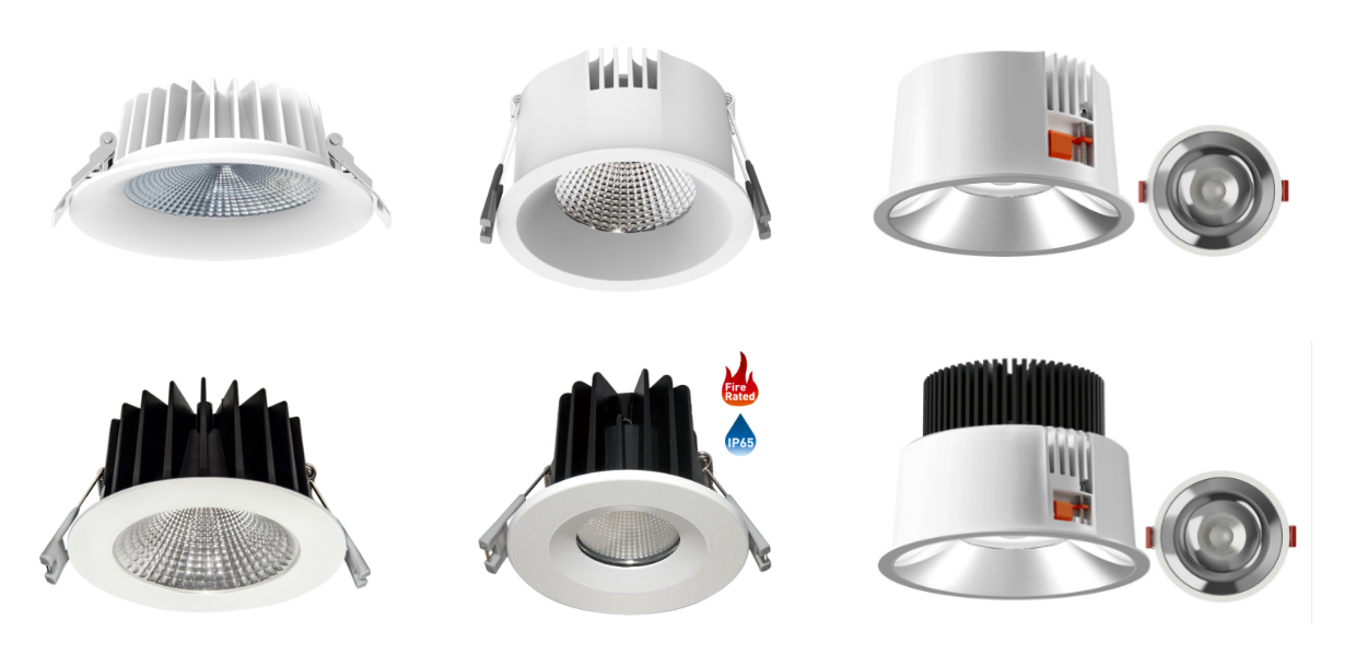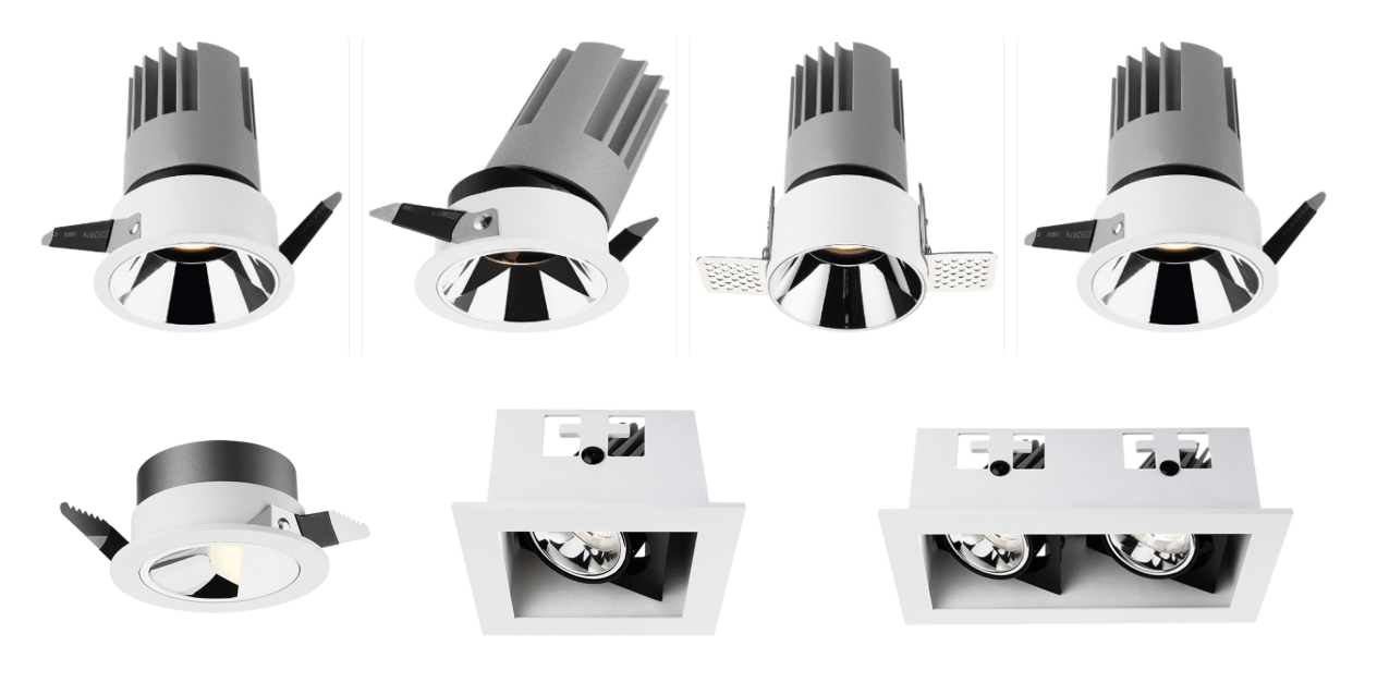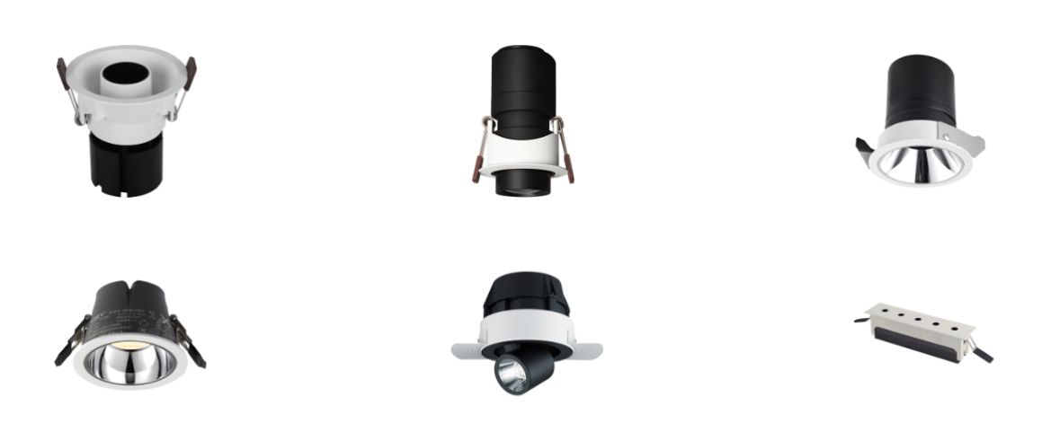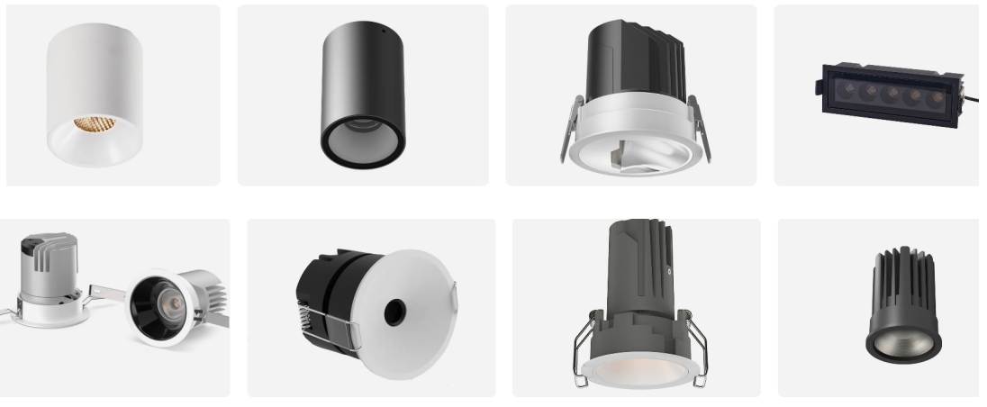 • Recessed Downlights: Including fire-rated, anti-glare, IP65, and adjustable models for residential and commercial projects.